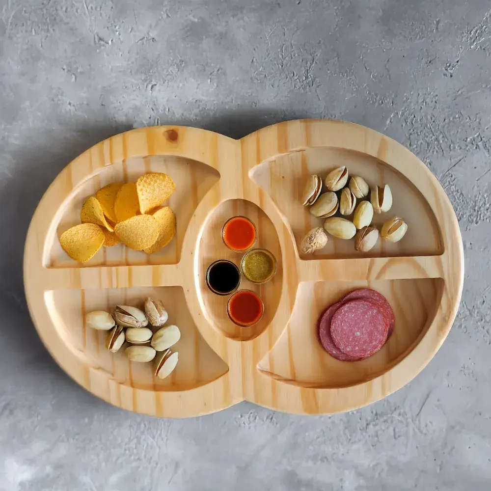 Plateau de Service en Bois – Design Compartimenté et Élégant