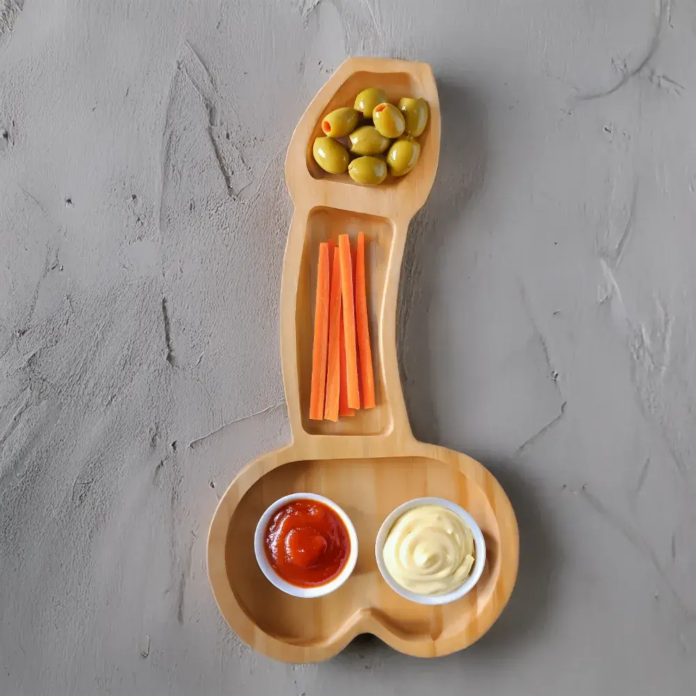 Fabriqué en bois de pin naturel et usiné par fraisage, ce plateau associe qualité artisanale et design ludique. Sa forme unique en fait un accessoire idéal pour servir des collations, bonbons, apéritifs ou autres douceurs lors d’événements festifs.